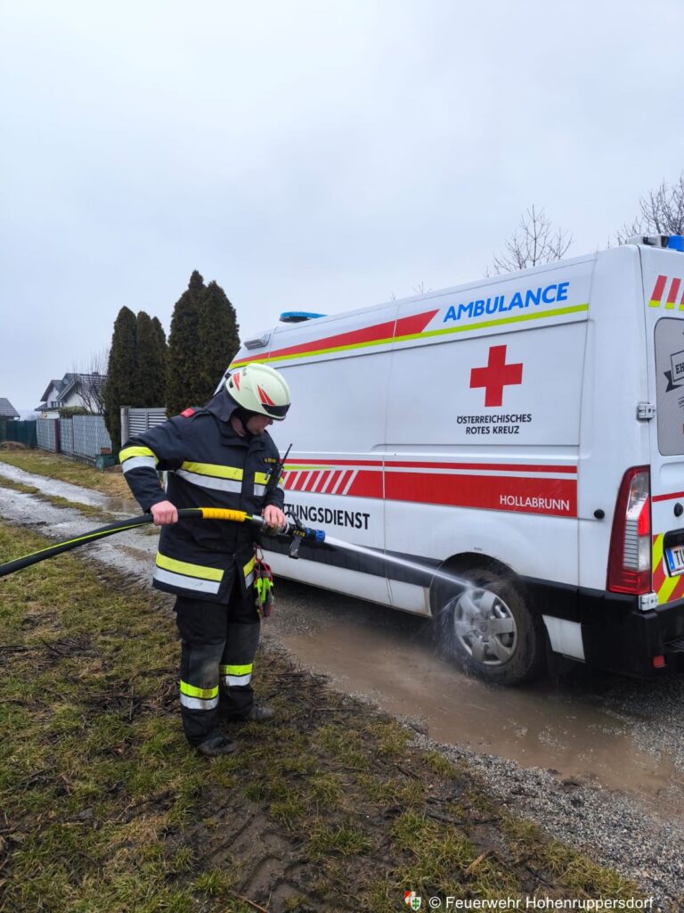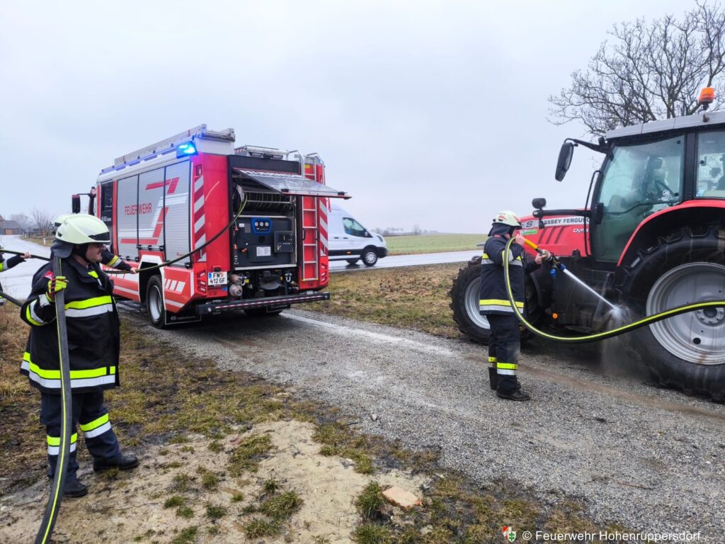 Mit Unterstützung eines Feuerwehrkameraden, der einen Traktor zur Verfügung stellte, gelang es, das Rettungsfahrzeug rasch wieder auf die Straße zu schleppen. Anschließend wurden sowohl das Rettungsfahrzeug als auch der Traktor mit der Schnellangriffseinrichtung gereinigt, sodass die Rettungsbesatzung ihre Fahrt fortsetzen konnte. Zudem wurde die Straße noch vor Einsatzende gesäubert. Nach rund einer Stunde konnten wir wieder ins Feuerwehrhaus einrücken.