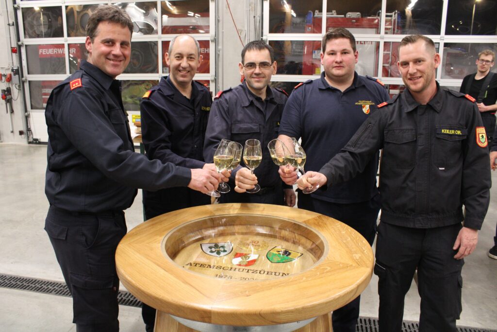 Beim gemütlichen Ausklang mit Speis und Trank ließ man die absolvierte Atemschutzübung nochmals Revue passieren und es entwickelten sich viele spannende Gespräche über gemeinsame Einsätze, Übungen und die über Jahrzehnte gewachsenen Freundschaften.