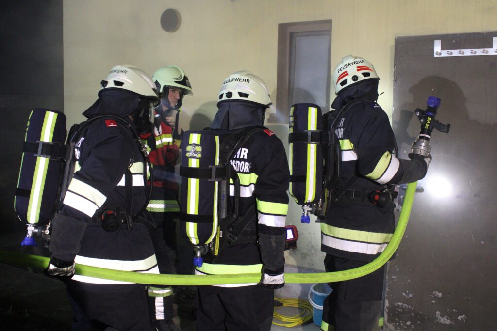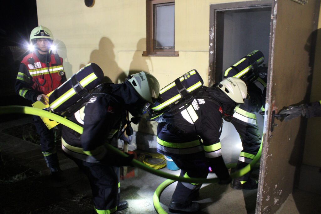 Aus diesem Grund folgte eine große Anzahl an Kamerad:innen aus Hohenruppersdorf der Einladung nach Lassee, darunter auch einige Reservisten. Zu Beginn wurde die Atemschutzübung durchgeführt, während sich die Reservisten bereits im FF‑Haus in Lassee aufhielten, sich angeregt über frühere Übungen austauschten und gemeinsam alte Fotos betrachteten.