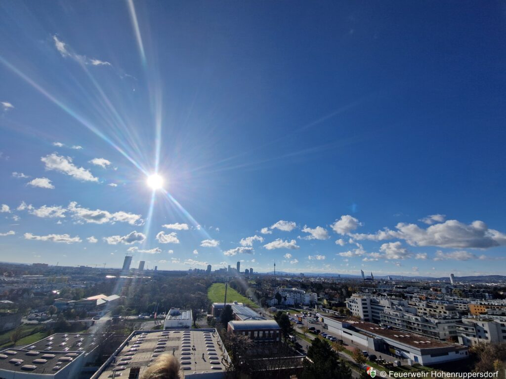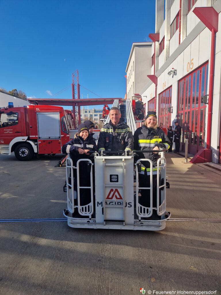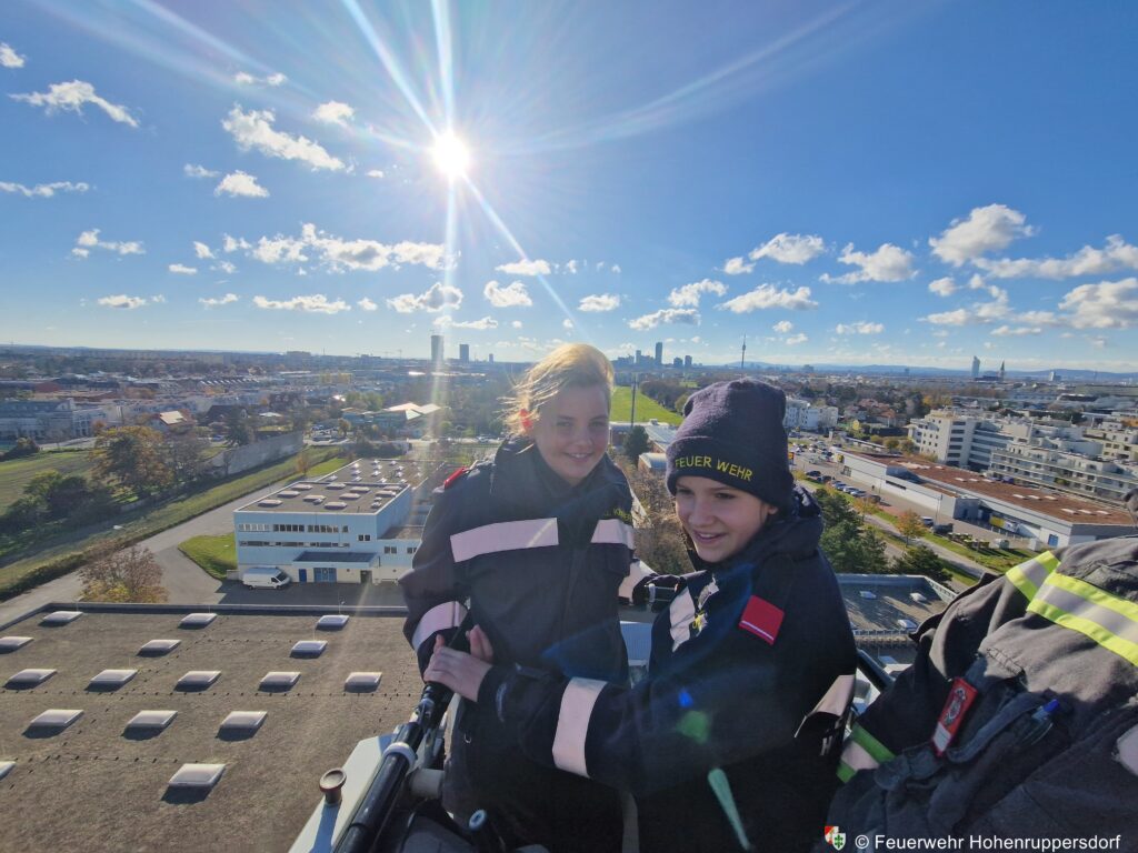 Das Abschlusshighlight für alle war eine Fahrt mit einer Drehleiter in die luftige Höhen Wiens, wo wir bei sonnigem Wetter die Aussicht genießen konnten.