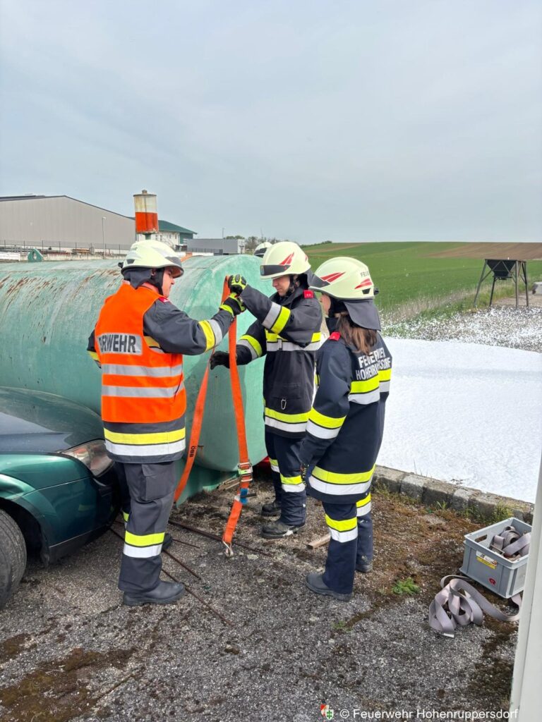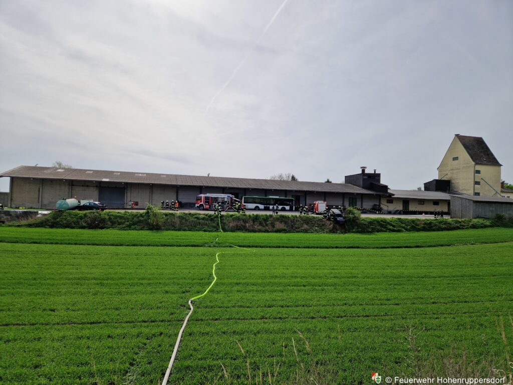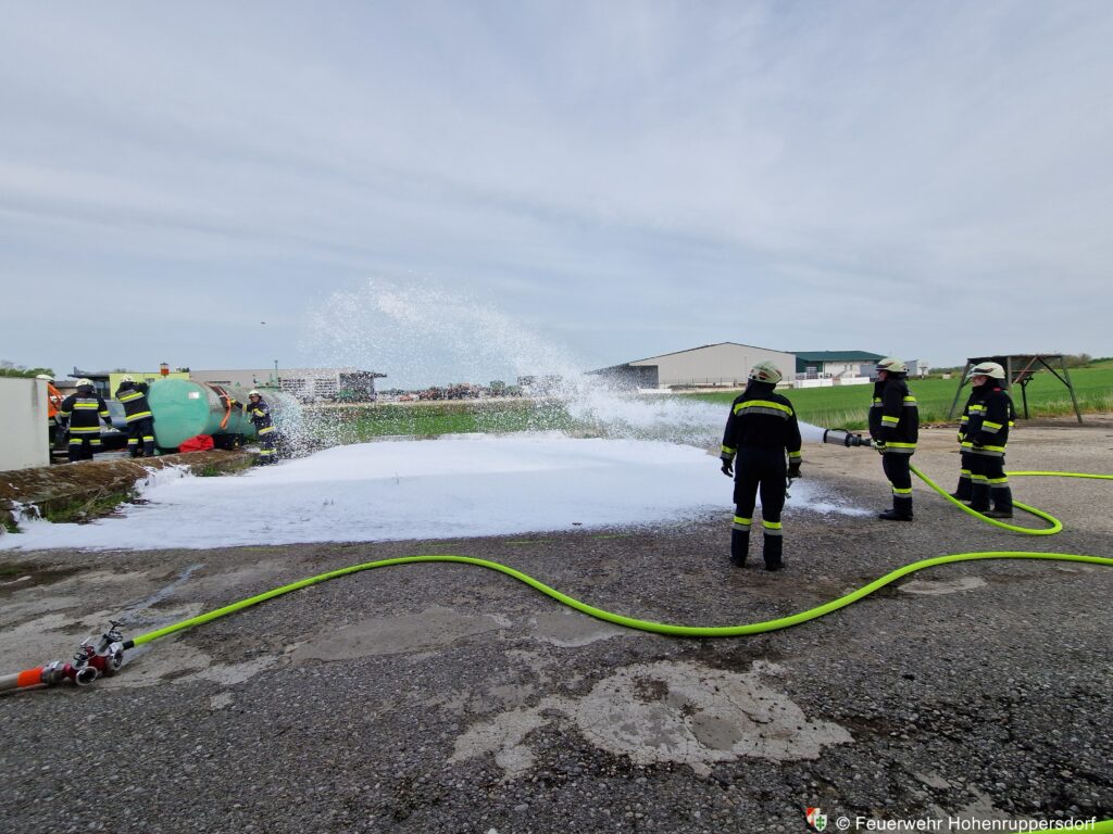- Betriebsmittelaustritt aus dem Treibstofftank, welcher aufgefangen und abgedichtet wurde, weiters durch Schaumteppich hergestellter Brandschutz