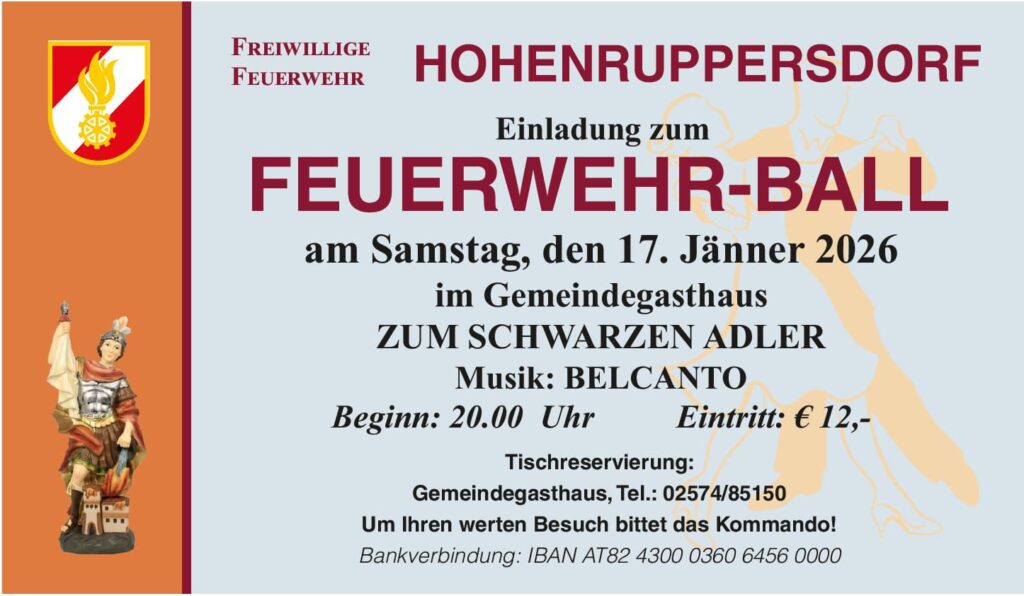 Am 9.1.2026 fand im Veranstaltungssaal der Gemeinde Hohenruppersdorf die jährliche Hauptversammlung der Freiwilligen Feuerwehr Hohenruppersdorf statt. In diesem Rahmen wurden der Feuerwehrkommandant sowie dessen Stellvertreter neu gewählt.
