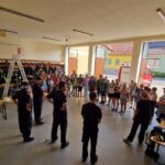 Auch einen „realen“ Einsatz durften die Kinder miterleben. Eine Schülerin warf beim Spielen ihren Schlüssel zu hoch, sodass dieser in einem Baum hängenblieb. Somit rückten wir mit Stehleiter und Einreißhaken aus, um den Schlüssel wieder „sicherzustellen“.