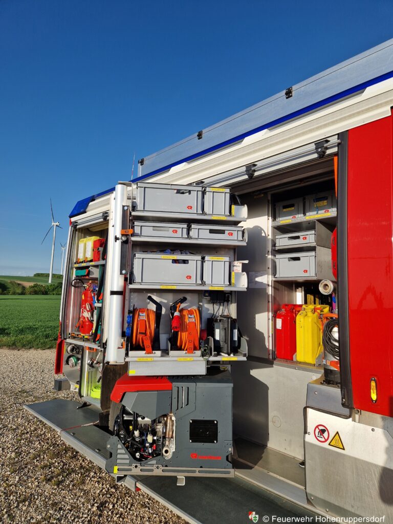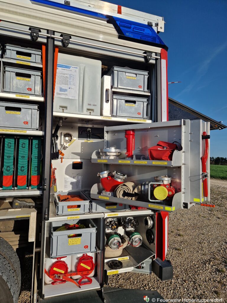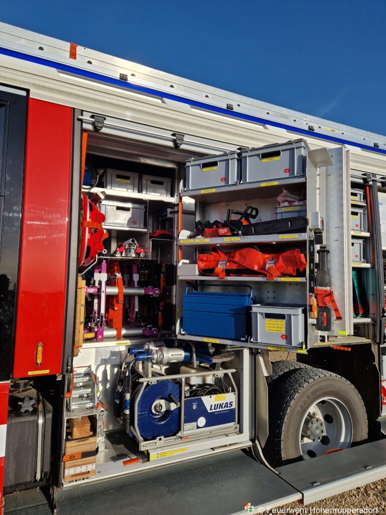 Ausstattung: Hydraulischer Rettungssatz, Notstromaggregat, Atemschutzgeräte, Schiebeleiter, Lichtmast, Hebekissen, Wärmebildkamera, Druckbelüfter, diverse Ausrüstungsgegenstände für Brand- und technische Einsätze