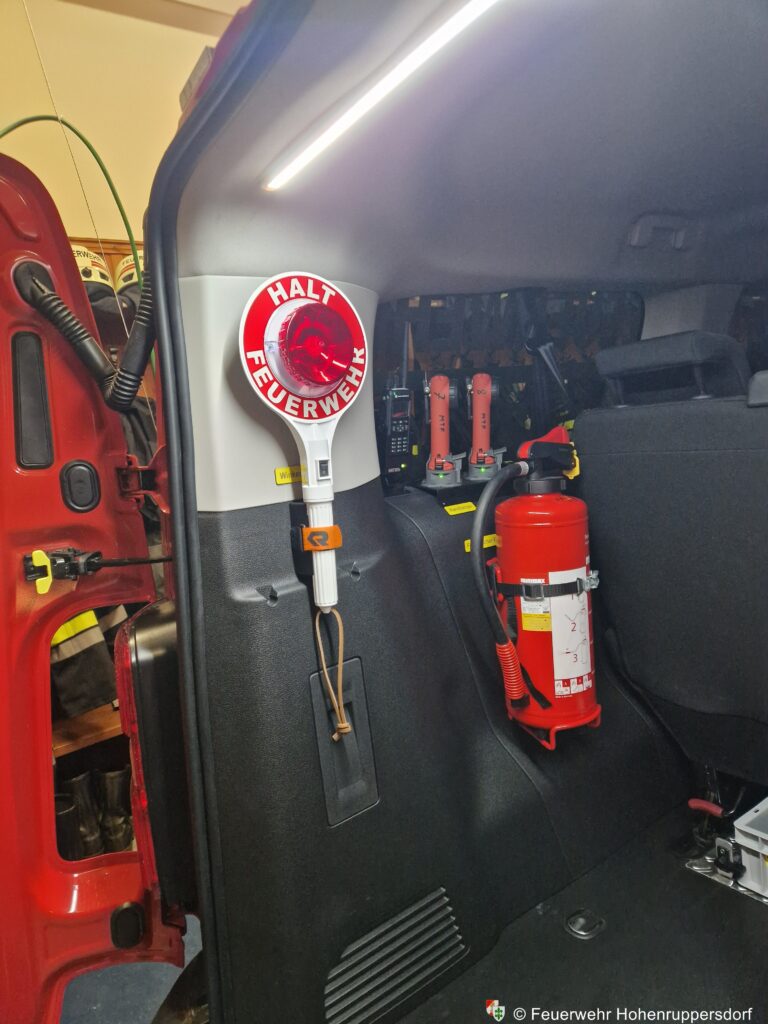 Ausrüstung: Feuerlöscher, Absicherungsmaterial, Kleinwerkzeug